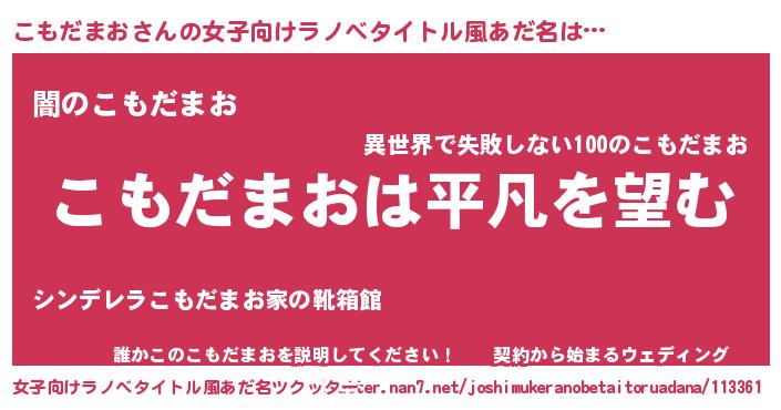 | 男性向けラノベタイトル風あだ名 | 『ダンジョンにこもだまおを求めるのは間違っているだろうか』 |