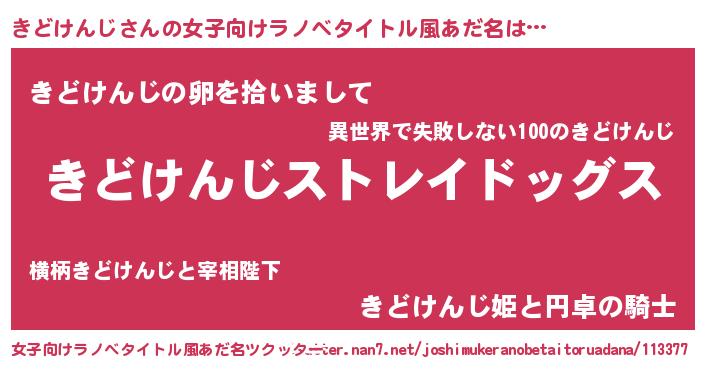 | 男性向けラノベタイトル風あだ名 | 『Re:きどけんじから始める異世界生活』 |