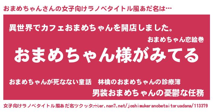 | 男性向けラノベタイトル風あだ名 | 『おまめちゃんの嫁は女の子じゃないと思った?』 |
