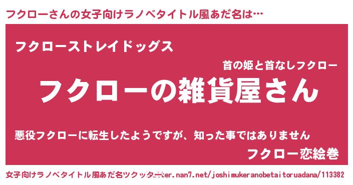 | 男性向けラノベタイトル風あだ名 | 『やはりフクローの青春ラブコメはまちがっている 』 |