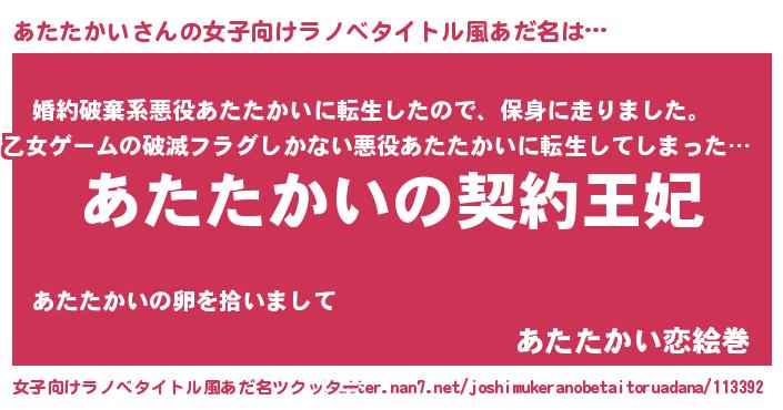 | 胡散臭い通販商品みたいなあだ名 | 『来世でも幸せになれる健康食品…その名も「あたたかい」』 |