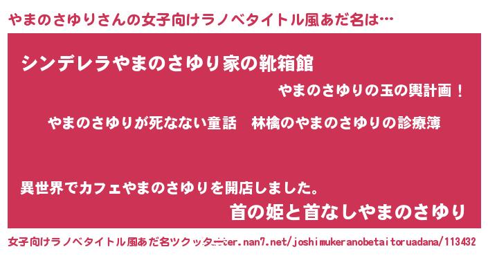 | 男性向けラノベタイトル風あだ名 | 『魔弾の王とやまのさゆり』 |
