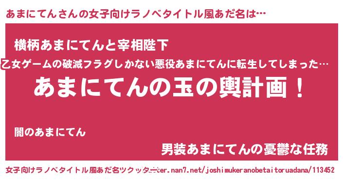 | 胡散臭い通販商品みたいなあだ名 | 『あなたにだけ特別に提供する世界で10本だけ現存している希少なブランデー…その名も「あまにてん」』 |