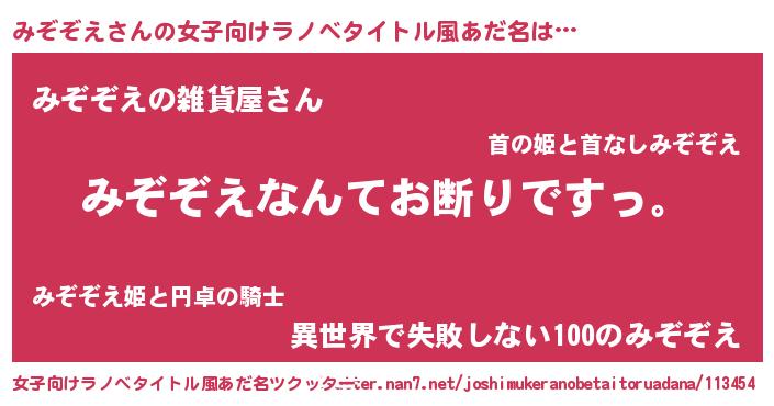 | ファンタジー風あだ名 | 『ゼミゾトゥ』『エターナルミゾゾエー』 |