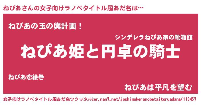 | 男性向けラノベタイトル風あだ名 | 『ネピアアートオンライン』 |