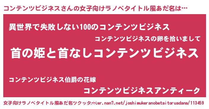 | 胡散臭い通販商品みたいなあだ名 | 『来世でも幸せになれる健康食品…その名も「コンテンツビジネス」』 |