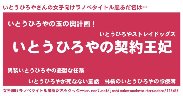 | 男性向けラノベタイトル風あだ名 | 『誰もが恐れるあのいとうひろやが、ぼくの専属メイドになるようです。』 |
