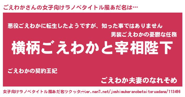 | 男性向けラノベタイトル風あだ名 | 『ごえわかに滅ぼされるだけの簡単なお仕事です』 |