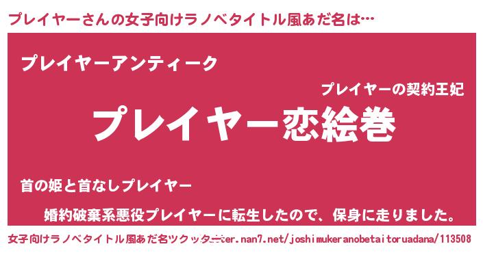 | 男性向けラノベタイトル風あだ名 | 『おまえをオタクにしてやるから、俺をプレイヤーにしてくれ! 』 |