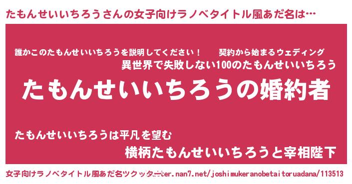 | ファンタジー風あだ名 | 『エターナルタモンセイイチロウー』 |