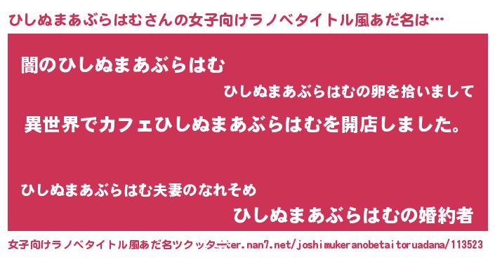 | ヒーロー風カッコイイあだ名 | 『ネオヒシヌマアブラハム』 |