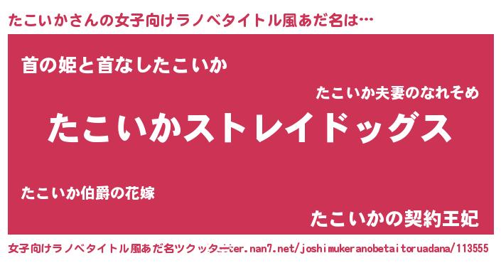 | 男性向けラノベタイトル風あだ名 | 『Re:たこいかから始める異世界生活』 |