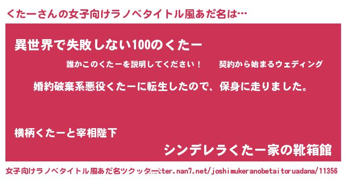 | 胡散臭い通販商品みたいなあだ名 | 『絶対に幸福をもたらす健康食品…その名も「くたー」』 |