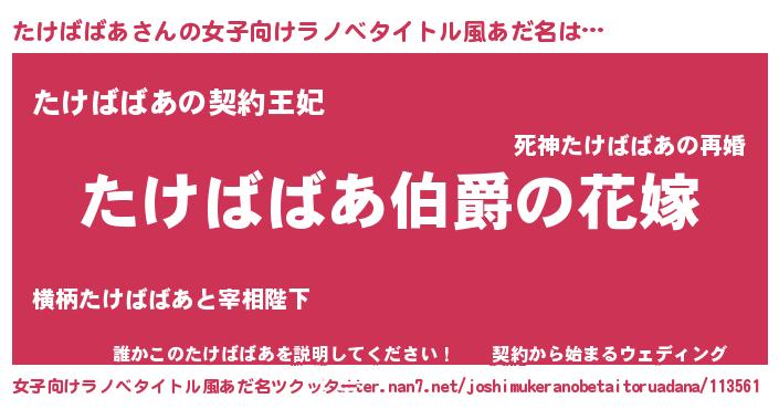 | 男性向けラノベタイトル風あだ名 | 『やはりたけばばあの青春ラブコメはまちがっている 』 |