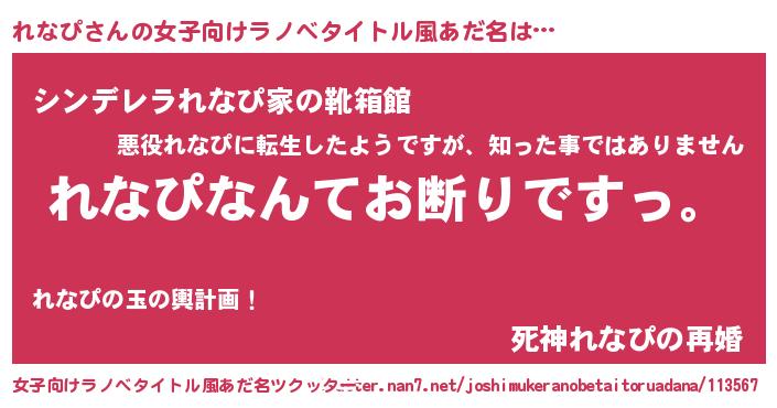 | ヒーロー風カッコイイあだ名 | 『超時空戦士レナピ』『慈愛の使者れなぴ』 |