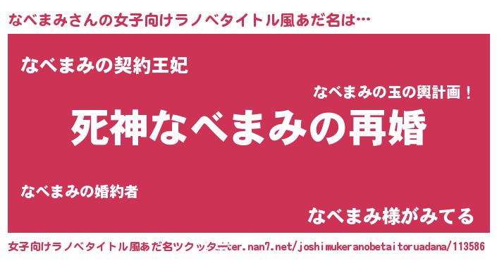 | 男性向けラノベタイトル風あだ名 | 『ノーゲーム・ノーナベマミ』 |