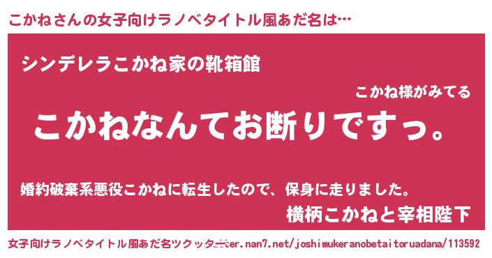 | 男性向けラノベタイトル風あだ名 | 『魔法科高校のこかね』『緋弾のコカネ』 |