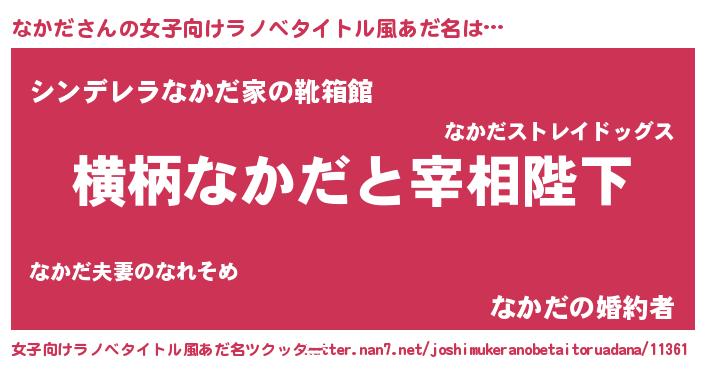 | 男性向けラノベタイトル風あだ名 | 『なかだに滅ぼされるだけの簡単なお仕事です』 |