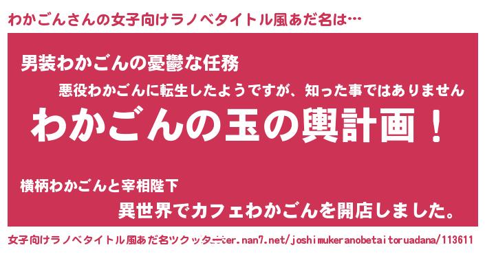 | ヘコむあだ名 | 『わかごん(笑)』『酢こんぶ』 |