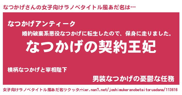 | 胡散臭い通販商品みたいなあだ名 | 『来世でも幸せになれる水素水…その名も「なつかげ」』 |