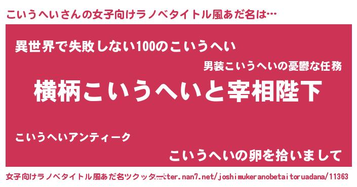 | 男性向けラノベタイトル風あだ名 | 『こいうへいに滅ぼされるだけの簡単なお仕事です』 |