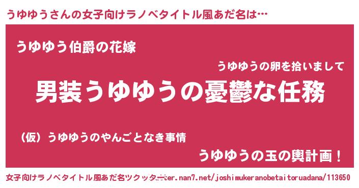 | 意味不明あだ名 | 『うゆゆうフォーエバー』『自称うゆゆう』 |