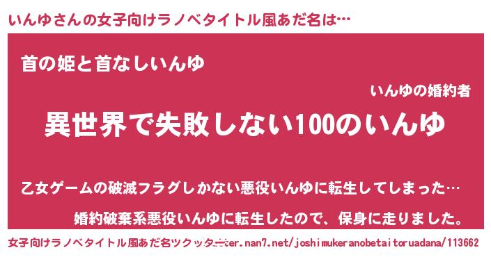| 胡散臭い通販商品みたいなあだ名 | 『絶対に幸福をもたらす健康食品…その名も「いんゆ」』 |