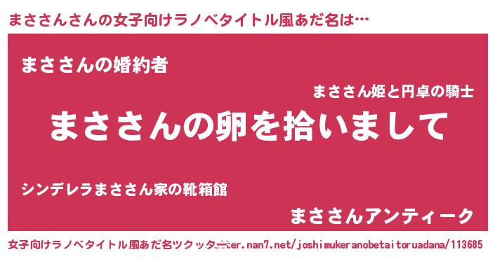 | 男性向けラノベタイトル風あだ名 | 『ダンジョンにまささんを求めるのは間違っているだろうか』 |