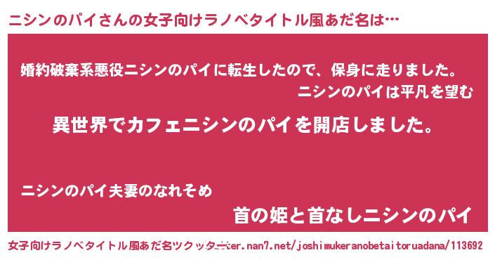 | ヘコむあだ名 | 『ニシンのパイ(遠い目)』『ニシお』 |