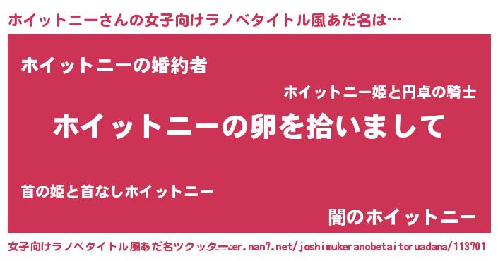 | ヒーロー風カッコイイあだ名 | 『幻影騎士ホイ』『最強戦士ホイットニー』 |