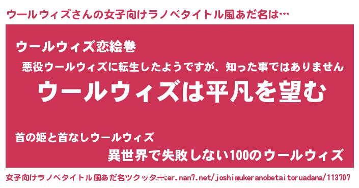 | 男性向けラノベタイトル風あだ名 | 『ダンジョンにウールウィズを求めるのは間違っているだろうか』 |