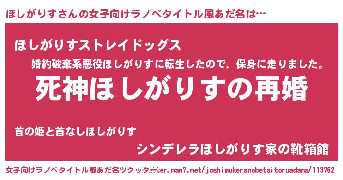| 男性向けラノベタイトル風あだ名 | 『ノーゲーム・ノーホシガリス』 |
