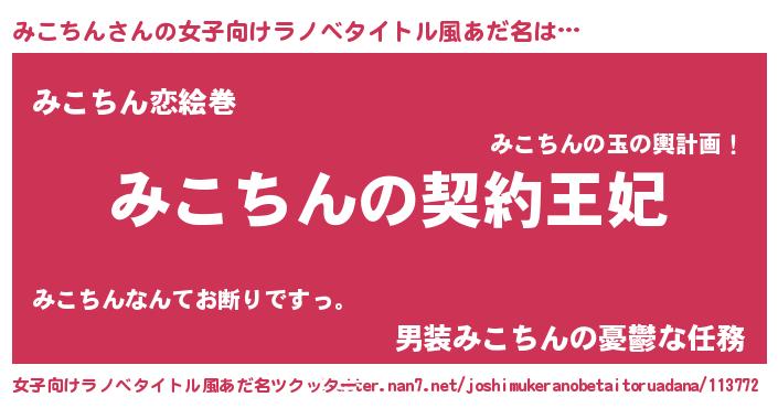 | ヒーロー風カッコイイあだ名 | 『ネオミコチン』『愛の使者みこちん』 |