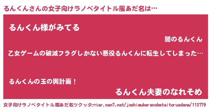 | 男性向けラノベタイトル風あだ名 | 『この素晴らしい世界にるんくんを!』 |
