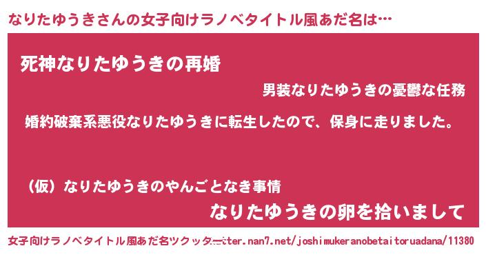 | 肩書あだ名 | 『なりたゆうき中将』『なりたゆうき塾長』 |
