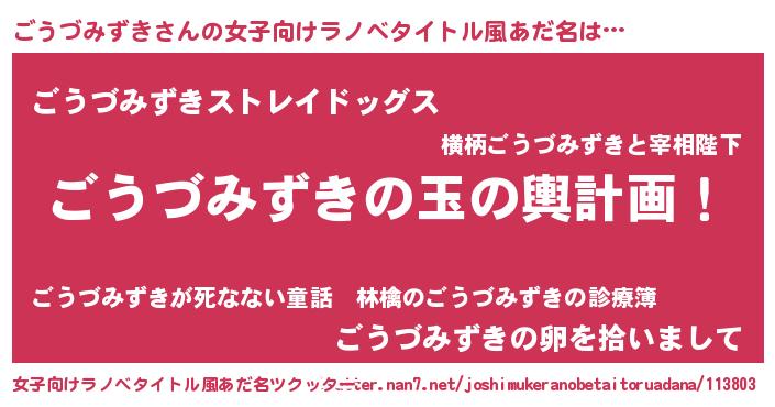 | 男性向けラノベタイトル風あだ名 | 『転生したらごうづみずきだった件』 |