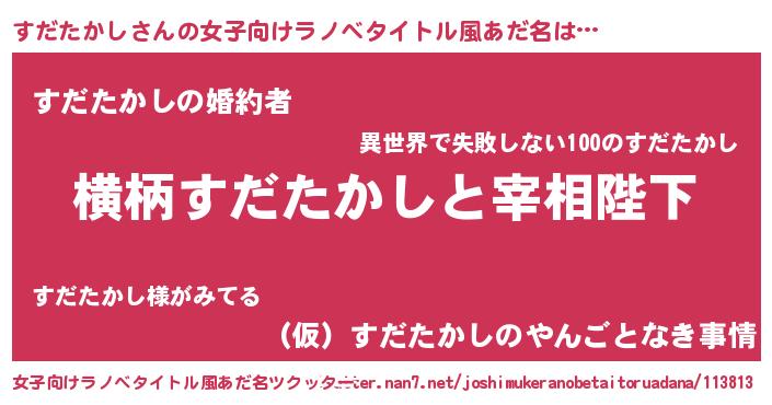 | 男性向けラノベタイトル風あだ名 | 『すだたかしに滅ぼされるだけの簡単なお仕事です』 |