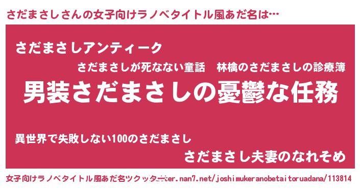 | 男性向けラノベタイトル風あだ名 | 『冴えないさだまさしの育てかた』 |