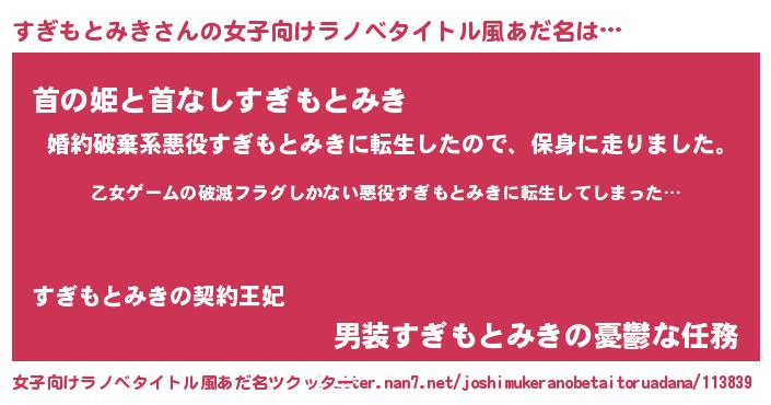 | 意味不明あだ名 | 『住所不定無職すぎもとみき(62歳)』 |