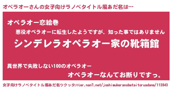 | 男性向けラノベタイトル風あだ名 | 『冴えないオペラオーの育てかた』 |