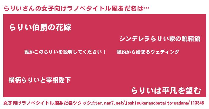 | 胡散臭い通販商品みたいなあだ名 | 『億万長者になれるブレスレット…その名も「らりい」』 |