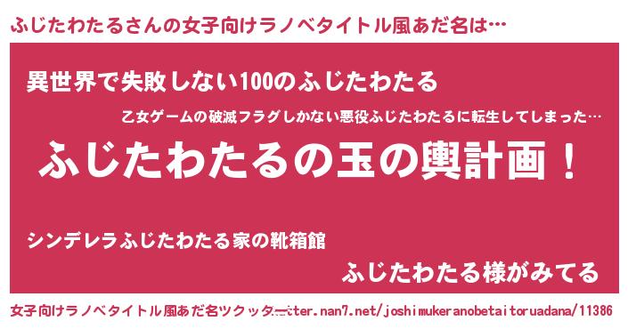 | 男性向けラノベタイトル風あだ名 | 『ふじたわたる~年齢イコール彼女いない歴の魔法使い~』 |