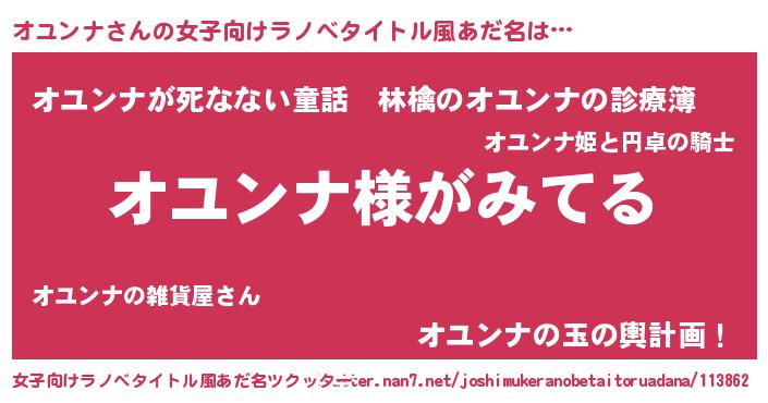 | 男性向けラノベタイトル風あだ名 | 『オユンナの嫁は女の子じゃないと思った?』 |