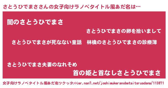 | 意味不明あだ名 | 『住所不定無職さとうひでまさ(13歳)』 |