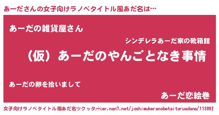 | 男性向けラノベタイトル風あだ名 | 『あーだの憂鬱』『緋弾のアーダ』 |