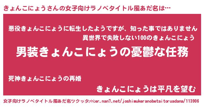 | 胡散臭い通販商品みたいなあだ名 | 『世界中を虜にした100年もののヴィンテージワイン…その名も「きょんこにょう」』 |