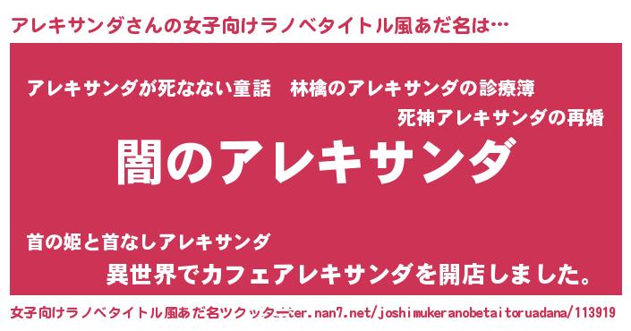 | ヒーロー風カッコイイあだ名 | 『最強戦士アレキサンダ』『仮面アレダー』 |
