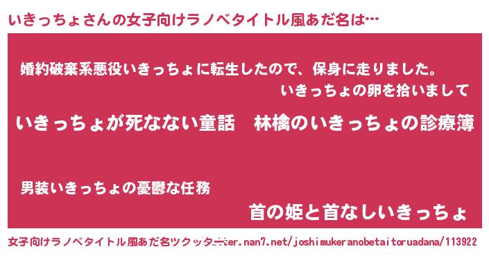 | 意味不明あだ名 | 『住所不定無職いきっちょ(89歳)』 |