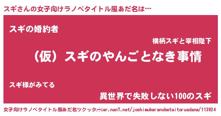 | 男性向けラノベタイトル風あだ名 | 『スギの憂鬱』 |