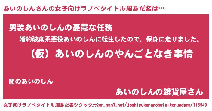 | 男性向けラノベタイトル風あだ名 | 『あいのしんの憂鬱』 |